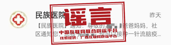 謠言:???廣西壯族自治區(qū)民族醫(yī)院發(fā)布關(guān)于流腦疫苗接種通知?