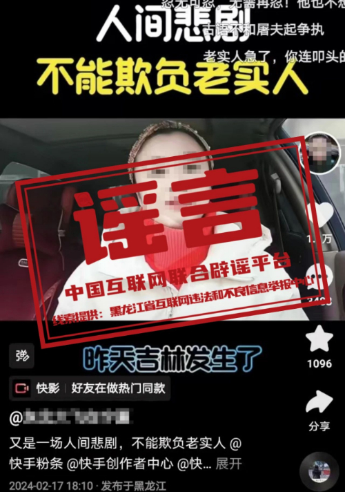 真相:近日,有網(wǎng)民在某視頻平臺(tái)發(fā)布視頻稱:“吉林省發(fā)生了一起刑事案件,有一名55歲的屠夫,因?yàn)橥恋孛芗m紛問題,手持殺豬刀殺害了12個(gè)人,屠夫在逃亡途中跑到山林里被警方抓獲。”該視頻內(nèi)容短時(shí)間內(nèi)引起公眾大量關(guān)注和討論。經(jīng)警方調(diào)查發(fā)現(xiàn),視頻中所稱案發(fā)地并未發(fā)生此類案件,這則消息純屬子虛烏有,系黑龍江大慶網(wǎng)民呂某為了博取關(guān)注、吸引流量而編造發(fā)布的謠言。目前,大慶市公安機(jī)關(guān)已依據(jù)相關(guān)法律法規(guī)對(duì)呂某給予行政處罰。(來源:大慶市委網(wǎng)信辦)