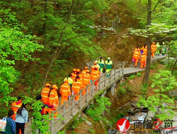 商洛之窗訊 “走進景區(qū),如畫的風景讓我們驚嘆,山綠綠的,水清清的,實在是太美了!”,“景區(qū)工作人員認真細致的照顧我們,讓我們很感動……”幾十名穿著環(huán)衛(wèi)服的工作人員穿行在景區(qū)的林間小道上。