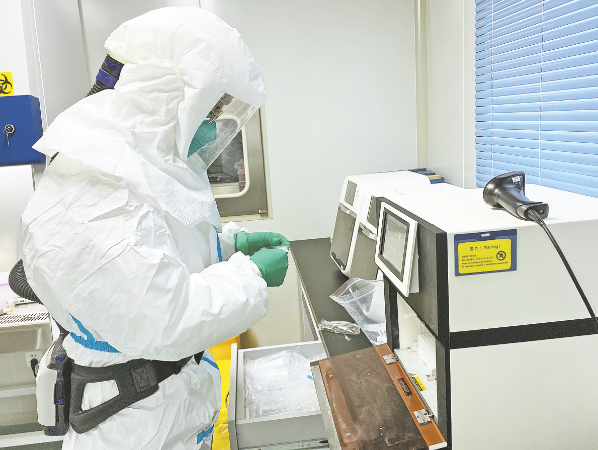 市疾控中心核酸檢測(cè)工作人員進(jìn)行核酸檢測(cè)