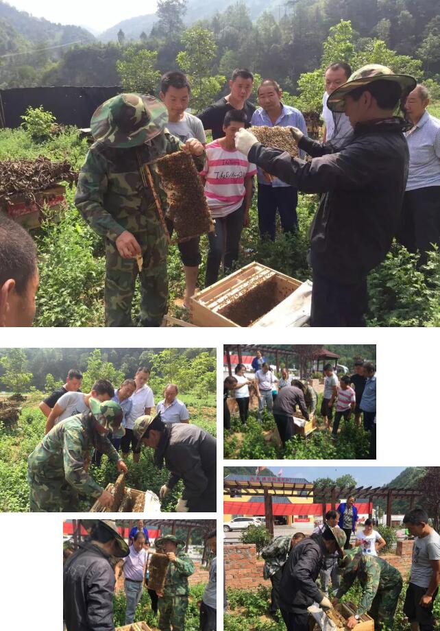 此次活動(dòng)旨在解決中蜂養(yǎng)殖戶生產(chǎn)生活中遇到的實(shí)際技術(shù)難題,幫助農(nóng)民提升使用新技術(shù)、新成果的能力,增加經(jīng)濟(jì)收入,達(dá)到脫貧致富的目的。培訓(xùn)會(huì)內(nèi)容主要分為五項(xiàng),第一項(xiàng)由花瓶子鎮(zhèn)副鎮(zhèn)長(zhǎng)張丹宏明確培訓(xùn)要求,第二項(xiàng)由丹鳳中蜂科養(yǎng)協(xié)會(huì)劉建華會(huì)長(zhǎng)對(duì)中蜂科養(yǎng)日常管理進(jìn)行培訓(xùn),第三項(xiàng)由協(xié)會(huì)張?zhí)烀窀睍?huì)長(zhǎng)對(duì)分蜂以及蜂王保護(hù)技巧進(jìn)行現(xiàn)場(chǎng)講解,第四項(xiàng)由協(xié)會(huì)技術(shù)指導(dǎo)員許建斌對(duì)黑蜂隔離技術(shù)進(jìn)行現(xiàn)場(chǎng)演示,最后由參會(huì)人員到丹鳳縣煙草專賣局駐油房坪村第一書記馮凱的蜂場(chǎng)進(jìn)行實(shí)地觀摩,養(yǎng)蜂協(xié)會(huì)專家對(duì)參會(huì)人員提出的問(wèn)題進(jìn)行現(xiàn)場(chǎng)解答。