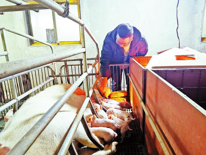 張方照看著剛出生的豬崽,這些豬崽是大伙增收的希望。