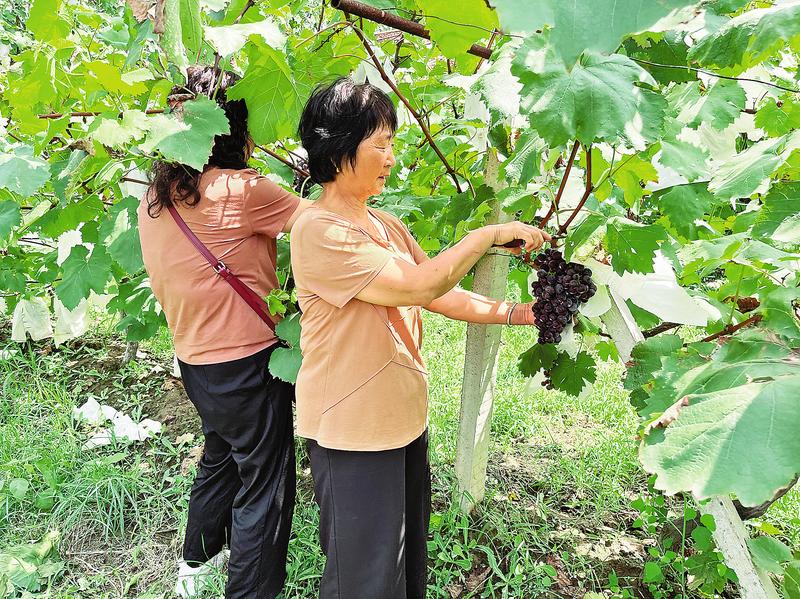 8月15日,在丹鳳縣萬(wàn)灣村萬(wàn)香灣無(wú)籽藍(lán)玫瑰葡萄采摘園內(nèi),村民忙著將葡萄采摘、裝箱。據(jù)了解,該采摘園種植了無(wú)籽藍(lán)玫瑰葡萄和龍眼葡萄兩個(gè)品種,種植面積18畝,可產(chǎn)15噸葡萄,年收入30萬(wàn)元,帶動(dòng)周邊20多名群眾就近就業(yè)。(記者 方方 攝)