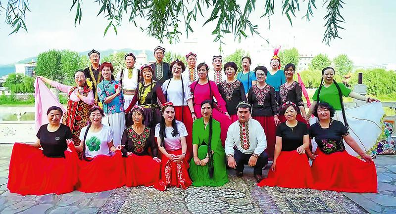 田新芳的建團(tuán)口號是“只求付出,不求回報”,對待每位團(tuán)員都如兄弟姐妹一般,教授舞蹈既細(xì)心又耐心。她說:“新疆舞自由奔放、健康歡快,學(xué)起來順暢自然,只要熱愛舞蹈,都能學(xué)得會、學(xué)得好。我們是一個團(tuán)結(jié)友愛的團(tuán)隊,大家在一起共同收獲健康,收獲快樂!”團(tuán)員周瑞珍今年65歲,是團(tuán)里的“大姐大”。她從醫(yī)療系統(tǒng)退休,性格開朗,喜歡唱歌、跳舞、誦讀和柔力球,經(jīng)常參加公益性文藝演出活動,跳了10多年廣場舞。接觸新疆舞后,周瑞珍被其熱情奔放的舞姿和優(yōu)美的旋律所吸引,毅然加盟新疆舞蹈團(tuán)。她高興地說:“我剛參加進(jìn)來時還有點自卑,但隨著舞蹈越來越熟練,內(nèi)心的活力被激發(fā)出來,跳出了自信,跳出了健康。”