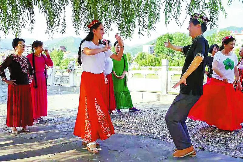 2019年6月,丹鳳西域風(fēng)情新疆舞舞蹈團(tuán)增加到13人,每人出資100元購買了一臺廣場舞手提音響,解決了音響設(shè)備配備不足的難題。當(dāng)年的重陽節(jié),舞蹈團(tuán)組織團(tuán)員到商山敬老院參加有關(guān)單位舉辦的慰問演出,為老年人帶去了歡樂。2020年9月30日,該團(tuán)參加了縣上舉辦的國慶文藝演出。2021年4月,該團(tuán)參加桃花谷桃花節(jié)開園演出,以獨特的民族風(fēng)情贏得了一片掌聲。