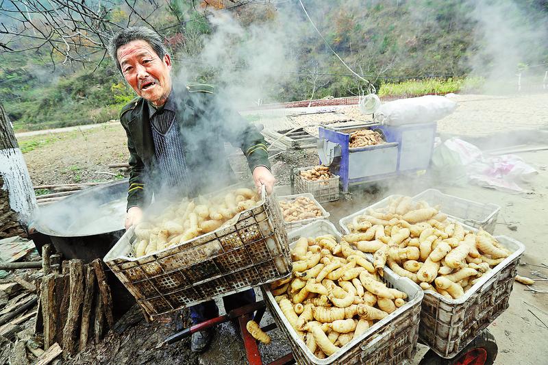碩果累累,草木清香。翻過初冬時節(jié)的蟒嶺大山,走進秦嶺深處的丹鳳縣巒莊鎮(zhèn),處處孕育著勃勃生機。在山峁溝壑、田間地頭,隨處可見村民們收獲、挑選、晾曬、銷售天麻的場面,一派繁忙景象。