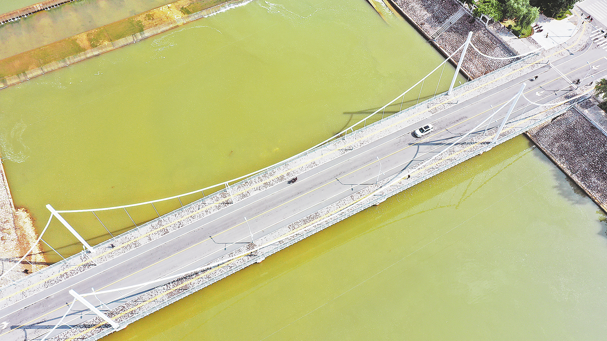 由人行橋改造成雙向兩車道通行的丹江彩虹橋,拉大了城市框架,方便了兩岸群眾出行。