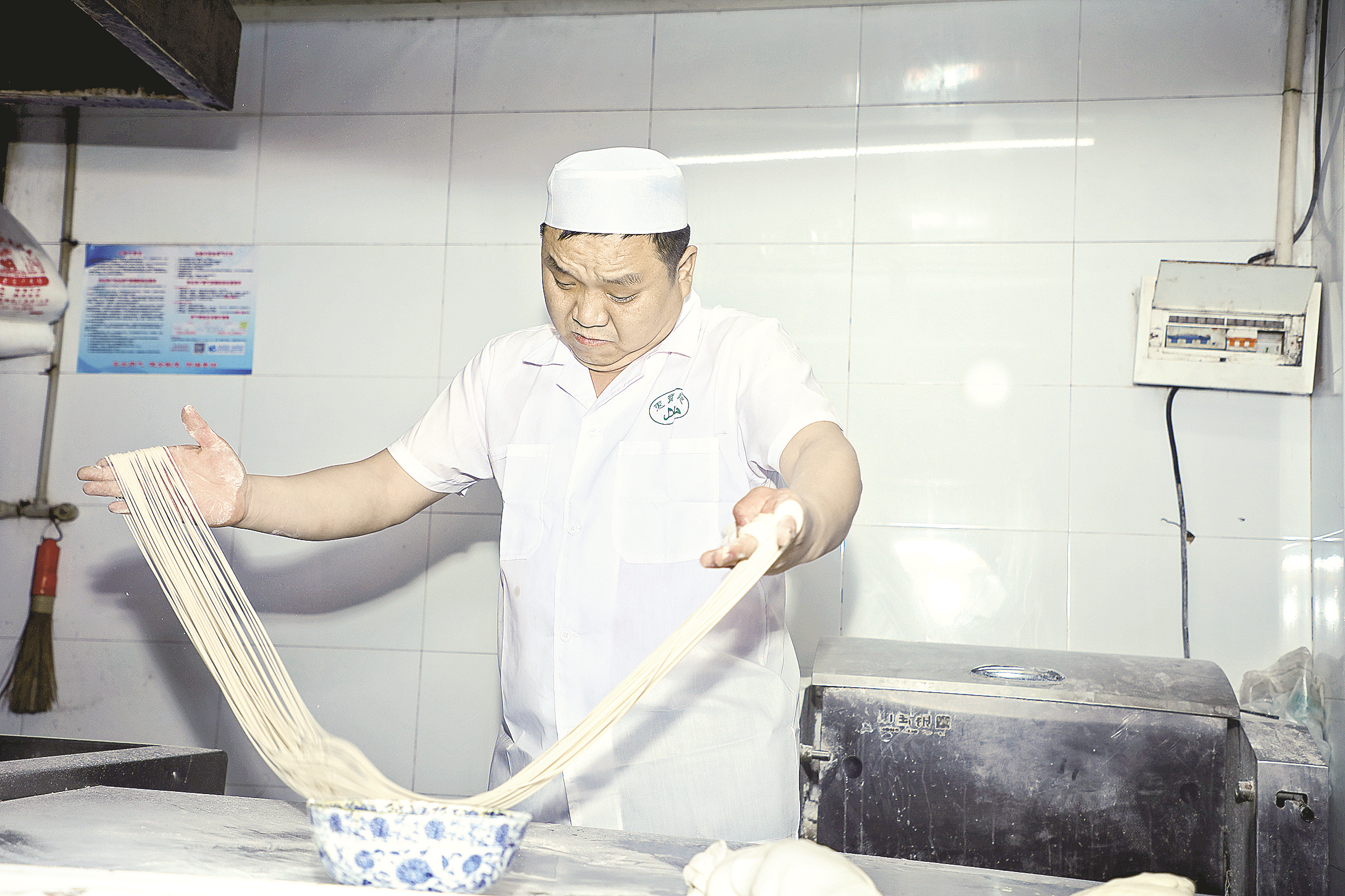 當(dāng)了兩年洗碗工,老板才讓他學(xué)做拉面。拉面師傅教他學(xué)習(xí)揉、拉、抻、拽的技巧,因個子低夠不著案板,他就在腳下墊兩塊磚頭。學(xué)習(xí)間隙,他自發(fā)到面館前廳幫忙,迎客點餐,收拾碗筷,打烊后主動打掃衛(wèi)生、整理桌椅。他細(xì)心觀察、總結(jié)客人喜歡點哪些餐,提醒老板多做一些儲備。晚上,就在店里打地鋪睡覺。