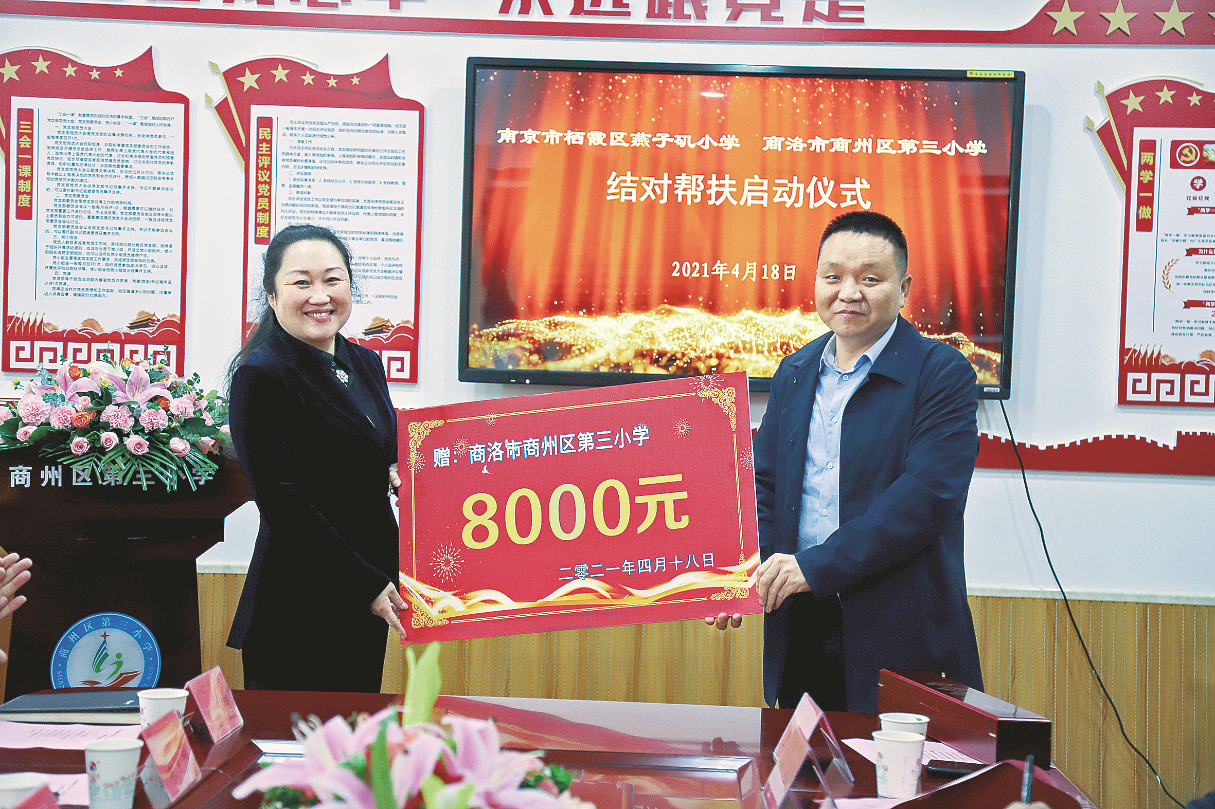 多年來,他一直組織、參加愛心公益事業(yè),先后向丹鳳貧困地區(qū)學(xué)生和農(nóng)戶捐贈學(xué)習(xí)用品和愛心物資共計價值100多萬元,用實際行動踐行了一名共產(chǎn)黨員的初心和使命。2010年,家鄉(xiāng)遭遇水災(zāi)時,他號召在外務(wù)工老鄉(xiāng)伸出援手,積極捐款,為家鄉(xiāng)災(zāi)后重建貢獻(xiàn)力量。2020年新冠肺炎疫情期間,他捐資捐物,與雨花臺區(qū)和丹鳳縣人民政府共同協(xié)作,組織農(nóng)民工“點對點”返崗千余人,幫助他們盡快復(fù)工復(fù)產(chǎn),恢復(fù)正常生活秩序。2020年11月27日,他牽線江蘇蘭詩服飾有限公司,為商州區(qū)三岔河鎮(zhèn)火神廟九年制學(xué)校捐贈了價值6萬元的校服,設(shè)立了2萬元的“蘭詩”獎學(xué)金。