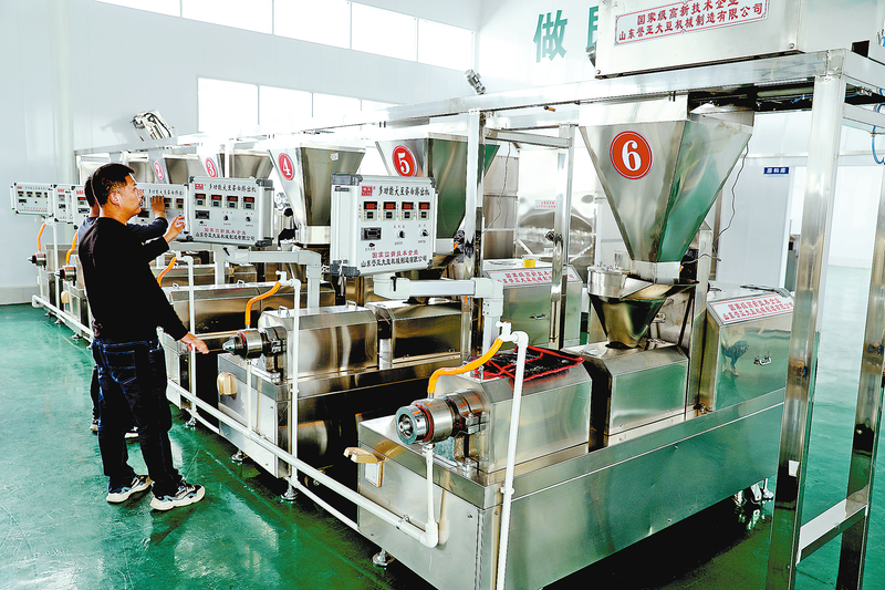 △位于竹林關(guān)鎮(zhèn)的陜西李氏凱農(nóng)生物科技有限公司主要加工魔芋制品,今年該公司又引進了豆制品生產(chǎn)線。圖為工作人員在調(diào)試新設備。