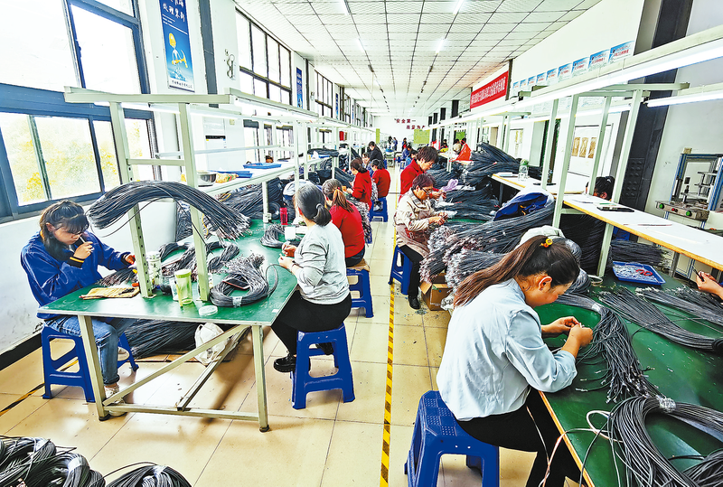 “原材料拉來后,經(jīng)過去外皮、剪編織、包銅箔、挑鋁箔、分線、激光、排線等40多道工序后,一條條高清數(shù)據(jù)線就算完工。這些數(shù)據(jù)線主要用于電視、電腦和播放器。加工后的產(chǎn)品會及時運往東莞市,最后由總公司統(tǒng)一銷往東南亞和歐美。”商洛萬朋輝電子有限公司負責人易仕平說,目前有60多個固定員工在這里集中加工產(chǎn)品,還有100多名“外發(fā)”人員把原材料拿回家加工,最后計件付工資,這樣靈活的加工模式,讓村民顧家、掙錢兩不誤。