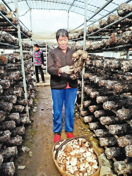 陽陰村村民在食用菌產(chǎn)業(yè)園采摘香菇
