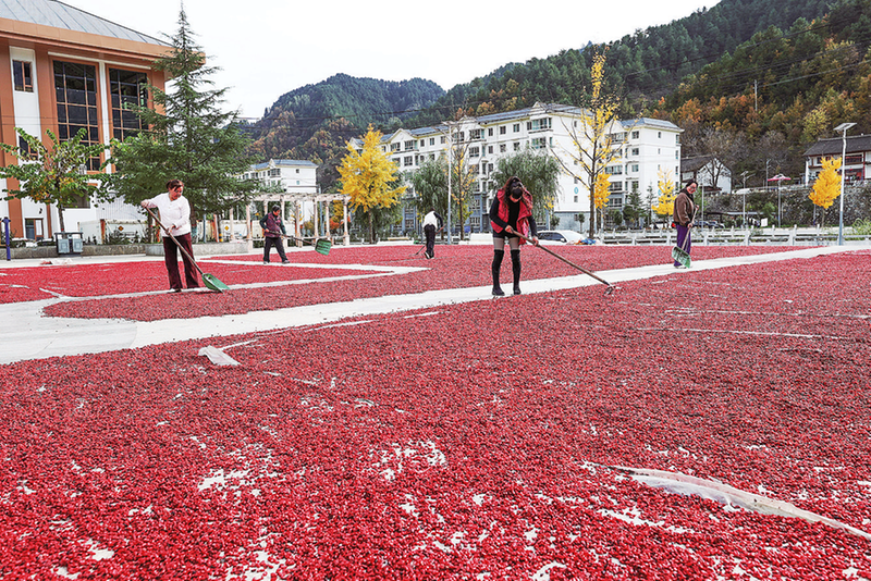 近年來,丹鳳縣按照“縣抓龍頭、鎮(zhèn)建基地、農(nóng)戶參與”的思路,科學(xué)規(guī)劃布局,推動(dòng)中藥材產(chǎn)業(yè)向優(yōu)勢(shì)區(qū)聚集,形成以流嶺為中心的山茱萸板塊。圖為丹鳳縣群眾在晾曬山茱萸。 (本報(bào)通訊員 阮世喜 攝)