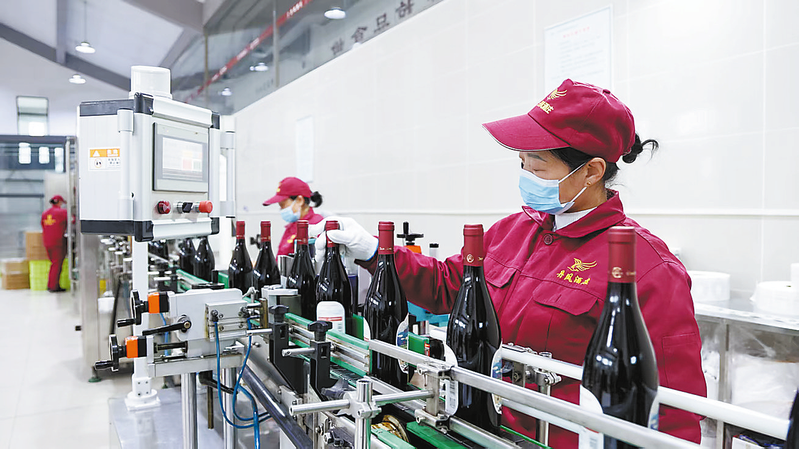 4月21日,丹鳳葡萄酒莊工人正在生產(chǎn)車間包裝紅酒。 (本報(bào)通訊員 樊利仁 攝)