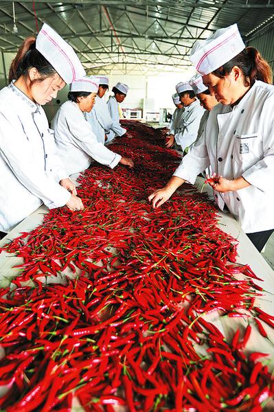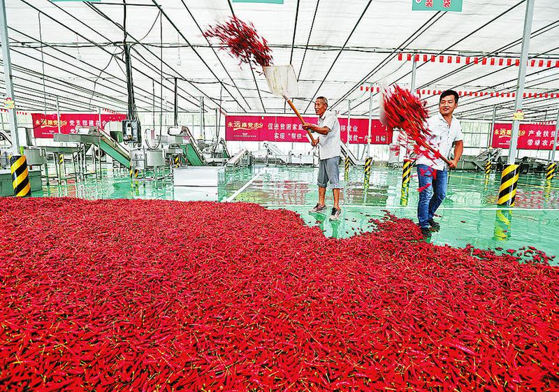 2017年春,洛南縣靈口鎮(zhèn)山村教師馬會(huì)鋒用愛人經(jīng)商多年的積蓄,創(chuàng)建洛南縣“辣上天”種植專業(yè)合作社,引導(dǎo)群眾種植辣椒,以期帶領(lǐng)群眾過上紅紅火火的好日子。馬會(huì)鋒的壯舉得到各方認(rèn)可,帶著“鄉(xiāng)親們共富”的美好愿望,大家積極協(xié)作,攜手共進(jìn)。南京市扶持合作社500萬元對口幫扶資金,解決其發(fā)展資金問題;洛南縣鼓勵(lì)貧困戶積極種植,給貧困戶每畝補(bǔ)助500元,擴(kuò)大產(chǎn)業(yè)規(guī)模;國家郵政集團(tuán)公司在全縣扶持37個(gè)村,種植辣椒8080畝,壯大村級集體經(jīng)濟(jì),為脫貧攻堅(jiān)助力。目前,合作社在洛南、商州、河南靈寶等地發(fā)展產(chǎn)業(yè)基地3.5萬畝,帶動(dòng)貧困戶6800多戶,占全縣2018年計(jì)劃脫貧戶9202戶的73.9%。9月15日,合作社產(chǎn)量抽樣調(diào)查顯示,辣上天種植專業(yè)合作社將實(shí)現(xiàn)產(chǎn)值1.3億元,戶均增收4000元以上。金秋時(shí)節(jié),記者在“辣上天”收獲季記錄了這項(xiàng)扶貧產(chǎn)業(yè)的發(fā)展傳奇。