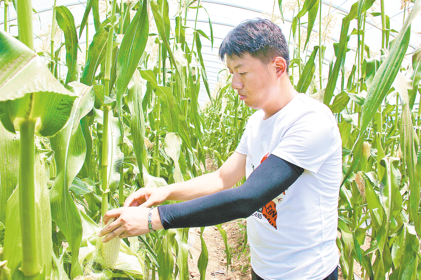 7月6日清早,武永良早早起床,簡單洗漱過后,便一頭扎進果蔬基地,仔細查看水果玉米生長情況,以便精準施策,指導(dǎo)工人科學(xué)管理水果玉米。