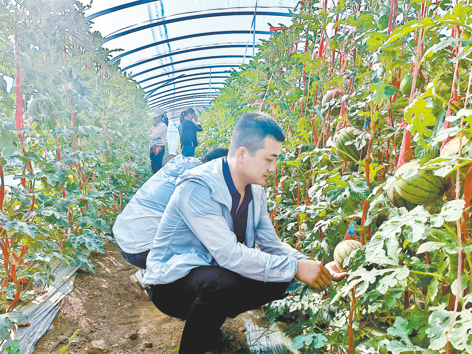 村黨支部書記吳凡查看西瓜生長情況