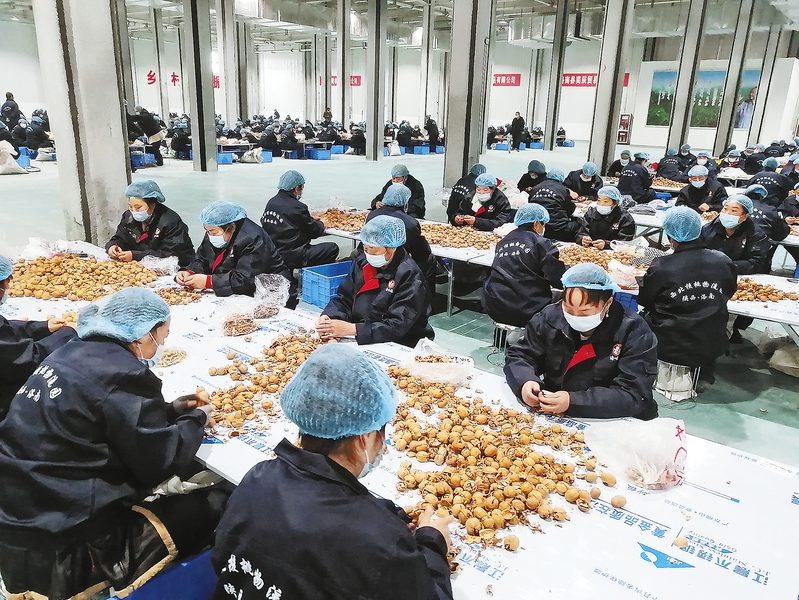 近年來,洛南縣把核桃產(chǎn)業(yè)作為縣域經(jīng)濟(jì)發(fā)展的主導(dǎo)產(chǎn)業(yè),按照“市場+企業(yè)+合作社+基地+農(nóng)戶”的發(fā)展模式,不斷推動(dòng)核桃產(chǎn)業(yè)高質(zhì)量發(fā)展,規(guī)劃建設(shè)了西北地區(qū)功能最完善、現(xiàn)代化程度最高、規(guī)模設(shè)施最大的西北核桃物流園區(qū),該園區(qū)的建成將解決千余名群眾就業(yè),人均年增收2.4萬元。圖為工人正在分揀核桃仁。 (本報(bào)通訊員 閆偉鋒 攝)