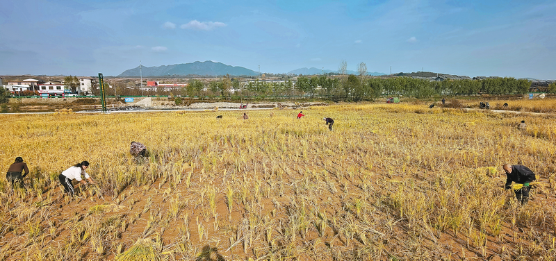 洛南縣保安鎮(zhèn)堅(jiān)持農(nóng)文旅融合,今年該鎮(zhèn)在倉(cāng)圣社區(qū)洛惠渠下實(shí)施的觀光農(nóng)業(yè)項(xiàng)目水稻示范種植面積達(dá)120余畝,繪就出產(chǎn)業(yè)興、生態(tài)美、村民富的鄉(xiāng)村振興新畫卷。圖為11月3日,保安鎮(zhèn)組織群眾利用晴好天氣收割水稻,確保顆粒歸倉(cāng)。 (本報(bào)通訊員 楊開讓 攝)