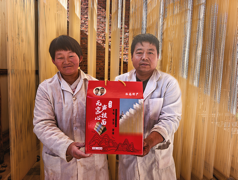 張益和郭軍盈緊跟時(shí)代發(fā)展,制作包裝盒,把自己的掛面起名為“無聲空心掛面”。