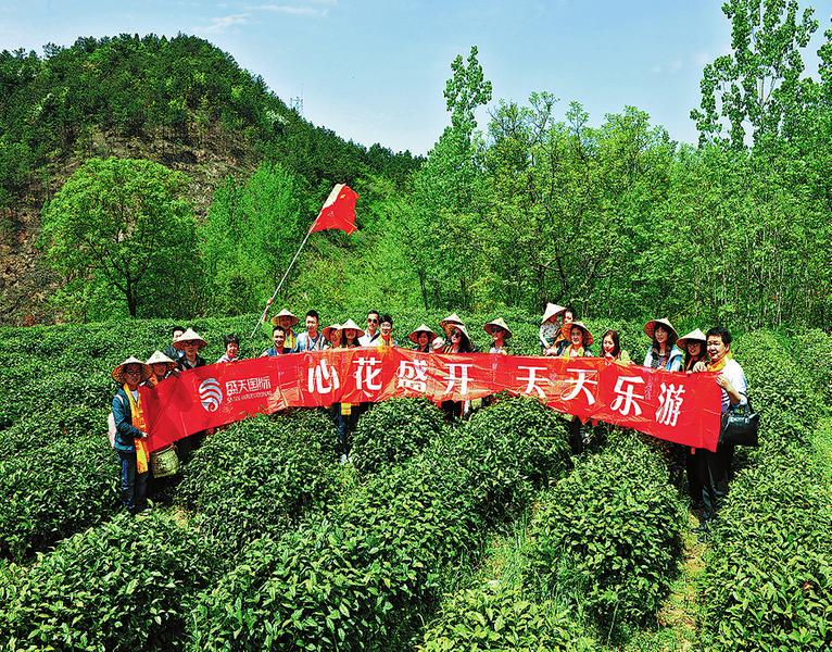 那里是一幅畫(huà),毫不夸張。您可記得,每年四月份各大媒體轉(zhuǎn)發(fā)的最為吸睛的茶山美景,它的原形正是那里。泛著金色的茶園里,采茶人兒頭戴斗笠,身穿藍(lán)碎花布,笑容燦爛。那里是商南茶園,也是商洛的茶葉的名片。