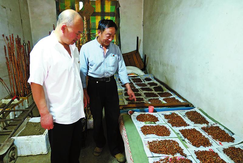 “今年我培育了5000窩天麻花粉,能栽5畝地。因?yàn)樘炻榛?gòu)造特殊,必須及時進(jìn)行人工授粉。這幾天,我們夫妻倆一直在給天麻花人工授粉。再過兩個星期,陸續(xù)成熟的天麻花粉果子就能采摘,培育零代天麻了。種植天麻時采用有性繁殖技術(shù),可以解決天麻無性繁殖造成的產(chǎn)量低和品質(zhì)差等問題。天麻有性繁殖包括栽麻、授粉、播種、管理等階段。要實(shí)現(xiàn)穩(wěn)產(chǎn)穩(wěn)增,對播種的地理位置、土壤、溫度的要求較高。因此,天麻種子的培育工作尤為重要。”范本有說。