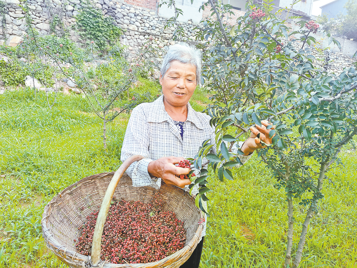 “目前,我們村種植了近300畝花椒,今年是第一年掛果,長(zhǎng)勢(shì)還不錯(cuò),昨天一天就采摘了濕花椒1000多斤,5斤濕花椒可曬成1斤干花椒。我們這都是天然晾曬的,曬干后的花椒一斤能賣60元左右……”商南縣清油河鎮(zhèn)后灣村黨支部書記李建華邊走邊介紹。