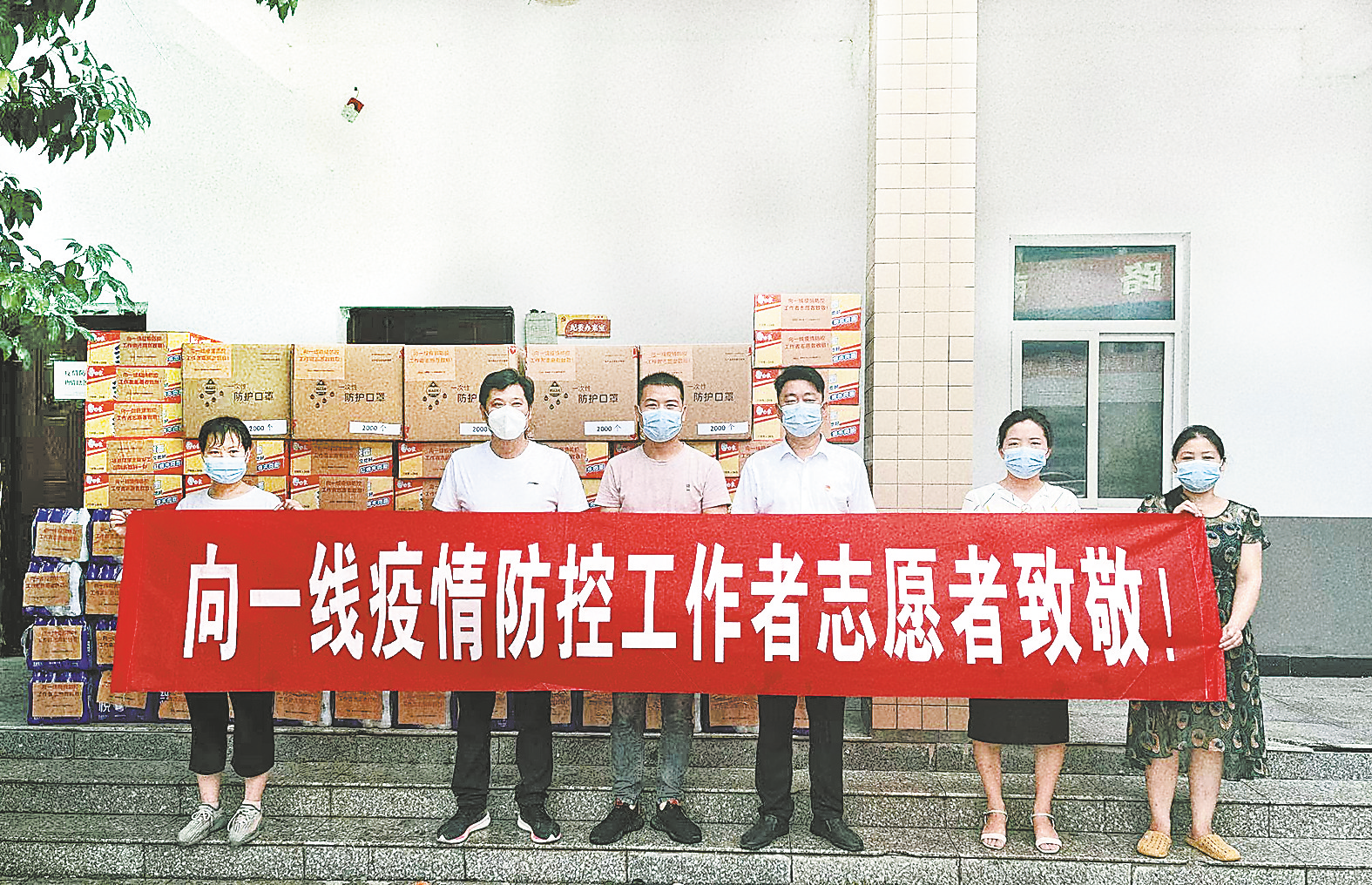 8月23日,商南縣卡之卡包裝有限公司負(fù)責(zé)人在青山鎮(zhèn)看望慰問疫情防控一線工作人員并送去慰問品。本輪疫情發(fā)生以來,我市不少愛心企業(yè)紛紛伸出援手,踴躍捐贈(zèng)善款及抗疫物資,以實(shí)際行動(dòng)為抗擊疫情貢獻(xiàn)力量。 (本報(bào)通訊員 馬 艷 攝)