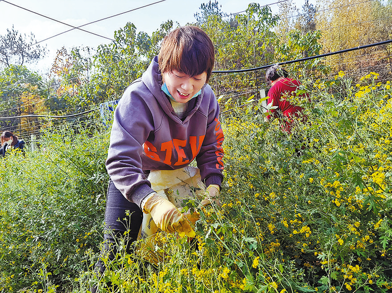 村民李桂娥說:“我們是本地人,來摘點菊花,不耽誤做飯、干家務。采這個是按斤算,多勞多得,也比較自由,就是利用空閑的時間掙一點零花錢,也賞賞菊花,順便也掙錢了,這樣挺好的。”