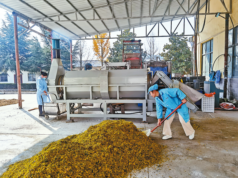村民雷桂英今年63歲了,她說:“我年齡大了,不能出門打工,白天到這兒來采點黃菊花,活兒也不重,晚上還能顧家,照顧孫子。”