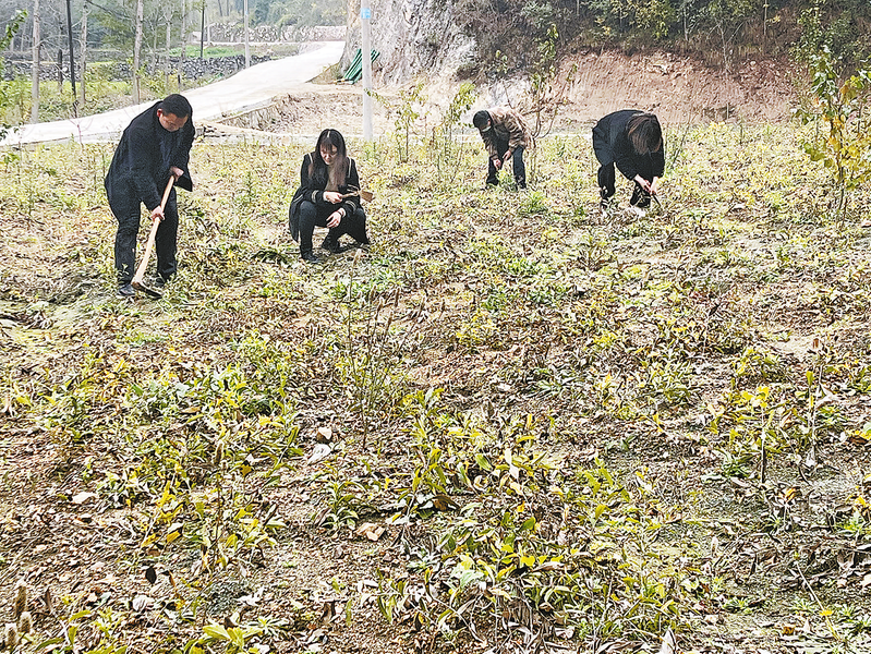?、俅迕裾谖寡颌诖迕裨谏n術(shù)種植基地內(nèi)除草③蛋雞養(yǎng)殖基地內(nèi)工人正在喂雞④毛起建正在查看蜜蜂生長情況⑤后坪村村民正在進(jìn)行廚師技能大賽