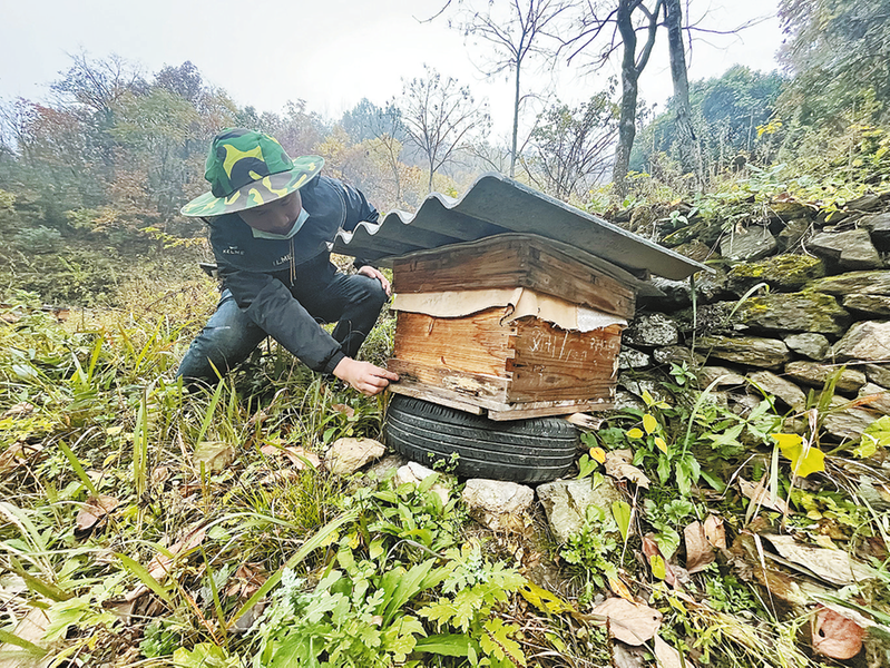 “這是我第3年養(yǎng)蜂了,從一開始的10箱發(fā)展到如今的200箱了。”在介紹自己的養(yǎng)蜂經(jīng)歷時(shí),毛起建眼中有著自豪,他告訴記者,小時(shí)候因?yàn)閷W(xué)習(xí)不好,初中畢業(yè)后就去北京打工,當(dāng)了十多年的“京漂”,見慣了大城市的繁華,他更想念家鄉(xiāng)的碧水青山,在政府的支持與父母的期盼中,他選擇回鄉(xiāng)養(yǎng)中華蜂。
