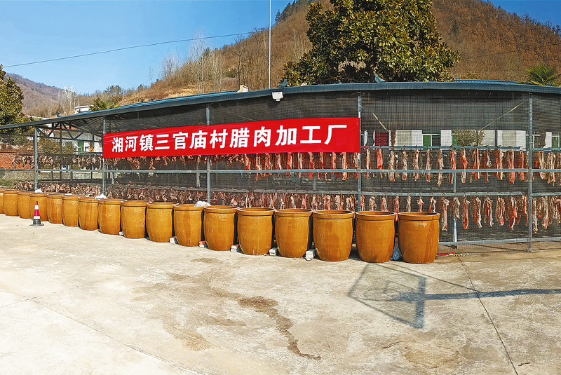 “我們村的臘肉加工廠,從一開始就規(guī)范化建廠,現(xiàn)有冷庫200立方米、晾曬場500平方米。春節(jié)前嘗試做了1萬多公斤臘肉、臘排,5000多公斤臘腸,目前已接到部分訂單,銷路不是問題。”2月3日,商南縣湘河鎮(zhèn)三官廟村黨支部書記路北方高興地說。