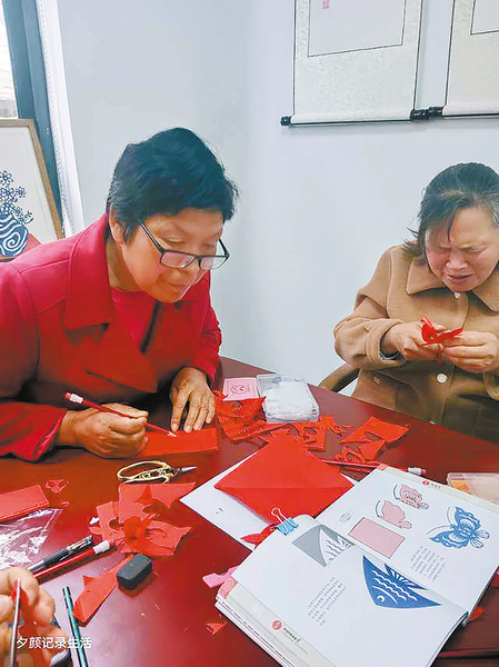 “社區(qū)喜歡剪紙的老人有空就去我那里學(xué)習(xí),有時三四個,有時一兩個,帶的小孩有興趣學(xué)的話我也會教?,F(xiàn)在他們可以剪一些基礎(chǔ)的,等他們學(xué)會了可以根據(jù)自己的技術(shù)水平創(chuàng)造作品并進(jìn)行售賣,都能有一定的收入,我在教他們的同時也可以提升自己的剪紙技術(shù)。通過相互學(xué)習(xí),讓老人從中獲得非遺傳承,生活上也能更加豐富多彩一些,有利于他們更加快樂健康生活。”熊紅艷說。