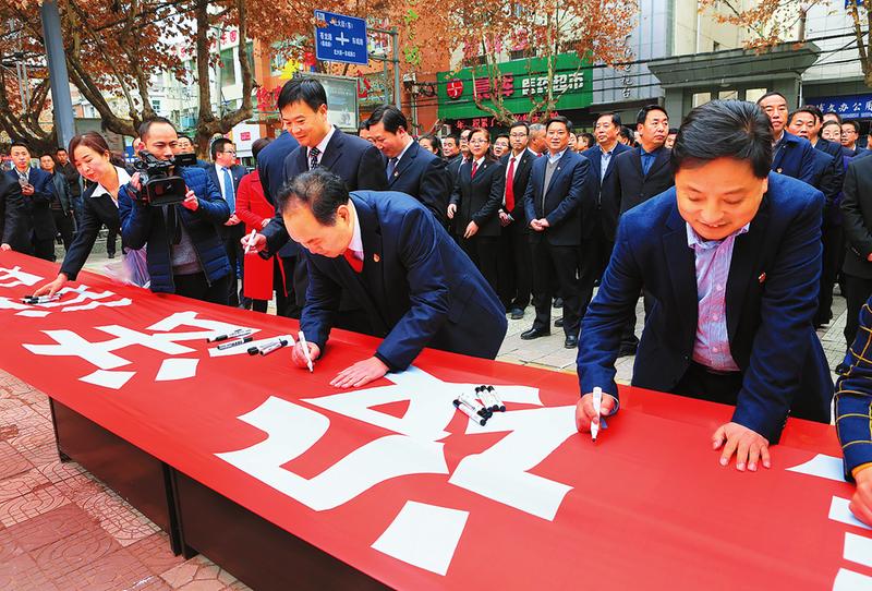 12月4日上午,在第五個國家憲法日暨全國法制宣傳日到來之際,山陽縣人大常委會組織開展“弘揚憲法精神、建設(shè)法治山陽”憲法宣傳活動,縣各部門領(lǐng)導(dǎo)、工作人員代表和學(xué)生代表及群眾共700多名參與宣誓及簽名活動。