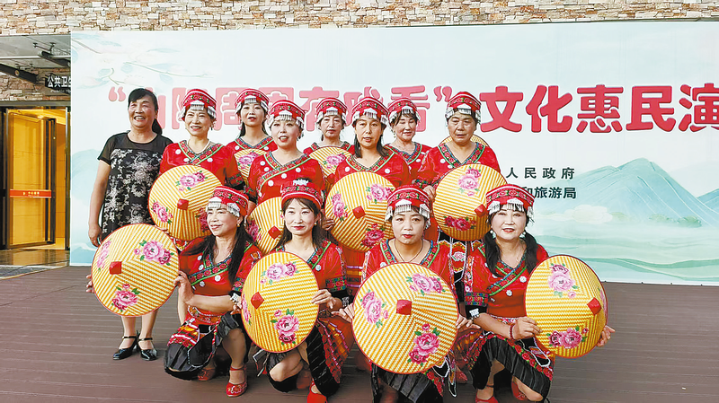 曹淑娥(后排右二)編排的節(jié)目《阿瓦人民唱新歌》在山陽縣翠屏山公園演出。
