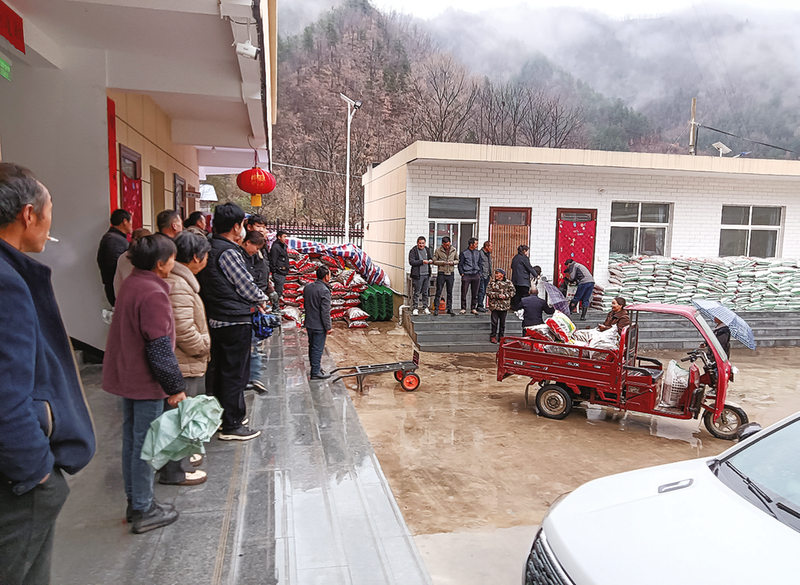 在上坪村的物資發(fā)放點(diǎn),三輪車(chē)、架子車(chē)等排成了近百米的長(zhǎng)龍。村干部拿著花名冊(cè),挨家挨戶核對(duì)數(shù)量,人群中不時(shí)傳來(lái)爽朗的笑聲。