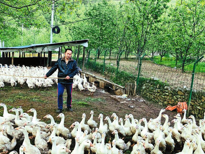 2017年9月,在鎮(zhèn)村干部的幫助下,他成立了臻禽養(yǎng)鵝農(nóng)民專(zhuān)業(yè)合作社,購(gòu)入鵝苗1500只,經(jīng)過(guò)科學(xué)喂養(yǎng),當(dāng)年收入1.5萬(wàn)元??吹綄?shí)實(shí)在在的收入,妻子陳秀的擔(dān)心轉(zhuǎn)為信心,和他一起悉心喂養(yǎng),逐漸擴(kuò)大養(yǎng)殖規(guī)模。2018年,他又爭(zhēng)取扶貧貼息貸款5萬(wàn)元,分批次購(gòu)入鵝苗7000只,實(shí)現(xiàn)年收入7萬(wàn)多元,順利退出貧困戶行列。“基本上養(yǎng)3個(gè)月就養(yǎng)成了,剛開(kāi)始養(yǎng)時(shí)也不太懂技術(shù),自己摸索,加上村上也給聯(lián)系技術(shù)員定期指導(dǎo),現(xiàn)在養(yǎng)得得心應(yīng)手,小問(wèn)題我自己就能解決。”王戰(zhàn)鋒告訴記者,2019年他發(fā)展了4批共計(jì)8000只鵝,當(dāng)年收入近10萬(wàn)元。