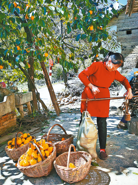 村民采摘柿子