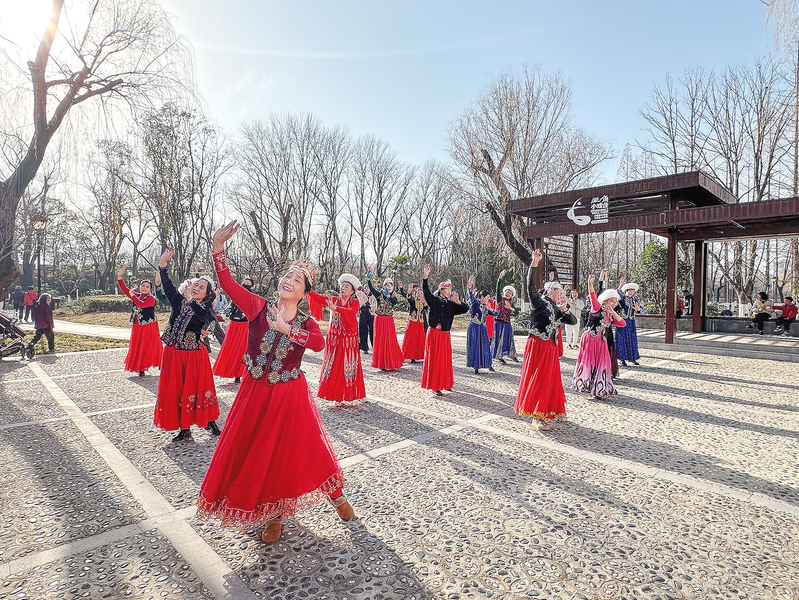 “新疆舞曲旋律歡快,服裝漂亮,跳起來,人特別開心。舞者也自由,可以自己跳、男女一起跳、男士和男士跳、女士和女士跳。對跳時肢體不接觸,彼此相距一米五左右,也有邊界感。”張玉珍微笑著說,“我?guī)缀趺刻於际堑谝粋€來,把舞友當(dāng)家人,看到他們高興,我心里也特別美。”