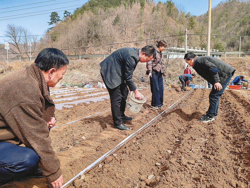 三月五日,市種子站技術(shù)人員在商州區(qū)牧護(hù)關(guān)鎮(zhèn)秦嶺鋪村指導(dǎo)馬鈴薯規(guī)范播種,幫助群眾篩選適宜本地推廣的優(yōu)質(zhì)高產(chǎn)馬鈴薯新品種,為春耕生產(chǎn)及夏收豐產(chǎn)筑牢良種基礎(chǔ)。(本報(bào)記者 楊鑫 攝)