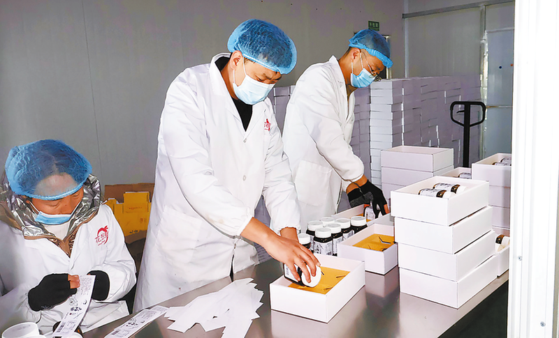 近日,工人在商洛花想蜂農(nóng)業(yè)技術(shù)開發(fā)有限公司的車間包裝產(chǎn)品。