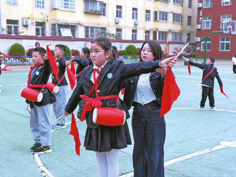 “小學(xué)生正處于身體發(fā)育和性格養(yǎng)成的關(guān)鍵階段,腰鼓表演能有效鍛煉學(xué)生的身體協(xié)調(diào)性、靈活性和肢體力量,增強(qiáng)學(xué)生體質(zhì)。”商州區(qū)第三小學(xué)黨支部副書記鄒始坪介紹,學(xué)校目前有星光爵士舞、彩藝?yán)L畫、編程機(jī)器人、電子琴等56個(gè)社團(tuán),“躍動(dòng)腰鼓”社團(tuán)的成立,將傳統(tǒng)民間藝術(shù)引入校園,讓學(xué)生近距離接觸并感受非遺文化的獨(dú)特魅力。同時(shí),孩子們?cè)谧约焊信d趣的領(lǐng)域中獲得知識(shí)、提升技能,找到自我價(jià)值,激發(fā)了學(xué)習(xí)熱情。此外,集體腰鼓表演講究整齊劃一和默契配合,學(xué)生在排練和演出中相互協(xié)作,有助于培養(yǎng)團(tuán)隊(duì)意識(shí)和集體榮譽(yù)感。