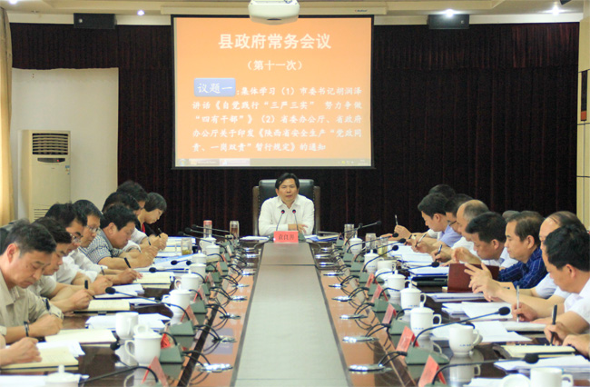 6月3日,縣長袁良善主持召開2015年第11次常務(wù)會議,集體學(xué)習(xí)市委書記胡潤澤專題黨課《自覺踐行“三嚴(yán)三實”、努力爭做“四有干部”》。
