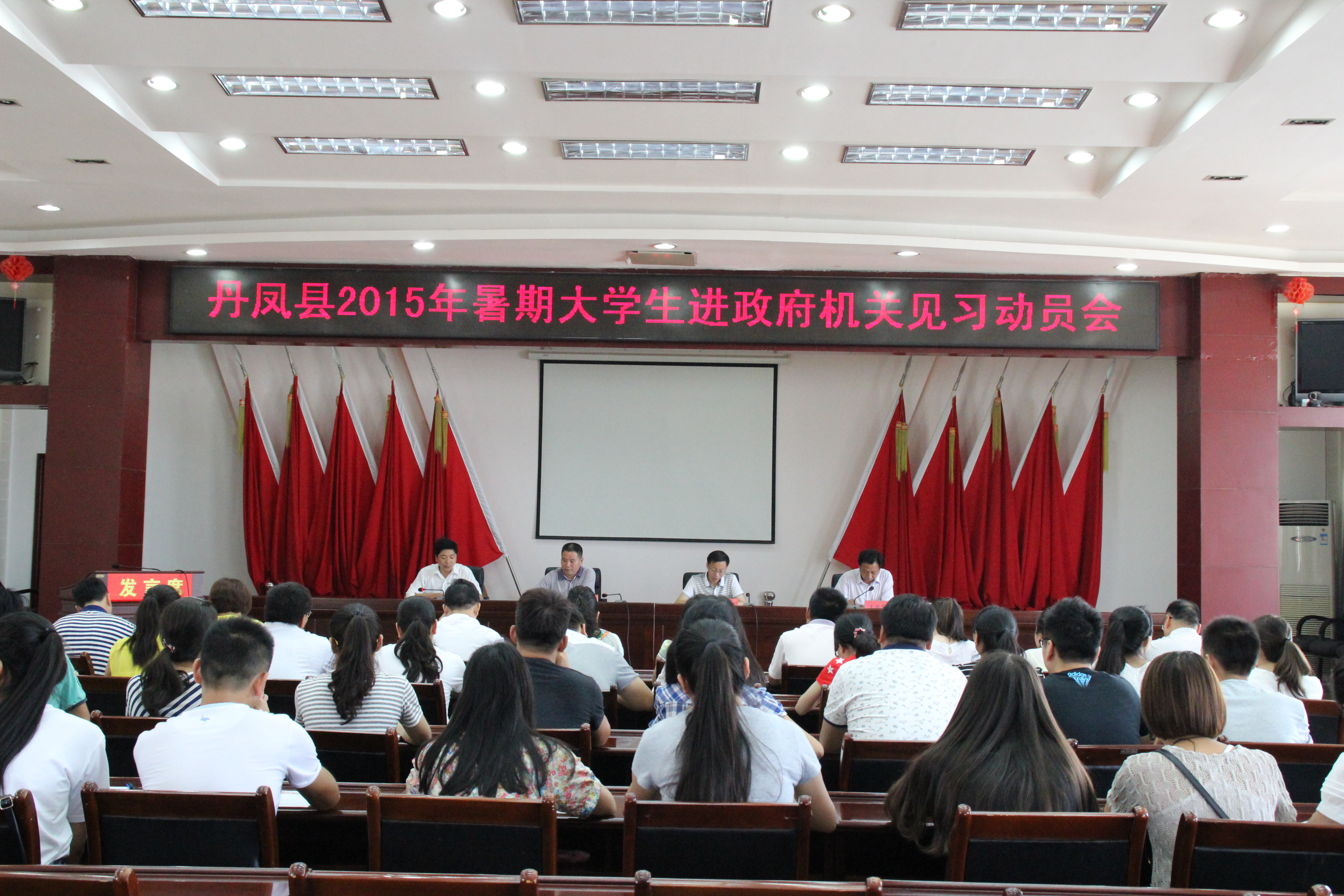7月13日上午,丹鳳縣2015年暑期大學(xué)生到政府機(jī)關(guān)見習(xí)活動(dòng)動(dòng)員會(huì)議在縣政府六樓會(huì)議室召開。縣政府辦公室副主任李佰朝、縣人社局副局長(zhǎng)孫寶成、縣教體局副局長(zhǎng)王國斌及各見習(xí)單位相關(guān)負(fù)責(zé)人出席了會(huì)議,30名見習(xí)大學(xué)生參加了會(huì)議。
