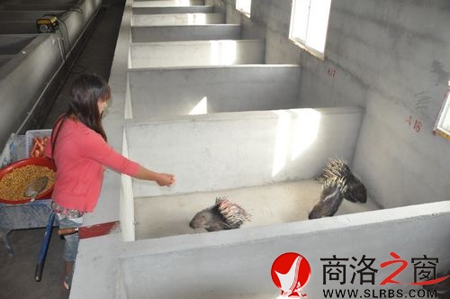 酷暑7月,記者走進柞水,樹木蔥綠,小河清澈的蘆柴溝,清晨依然涼爽。董秀斌的秦嶺豪豬養(yǎng)殖農(nóng)場就坐落在山清水秀的車家河村一組,占地700平方米。走進嶄新的養(yǎng)殖場,一股山林野生動物的腥味彌漫整個場房,一個個隔離開來的“小包間”就是豪豬的豬舍。董秀斌的妻子連明珍正在精心飼養(yǎng)著這些帶刺的寶貝,一只只豪豬聽見有人走近,趕緊躲在角落里。