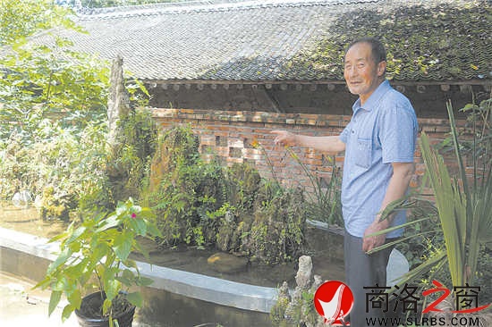 烈日炎炎的伏天,走進七星村你卻能感受到一絲絲愜意的涼爽,干凈平坦的通村水泥路被兩旁的綠樹掩映,一條清澈的小河從村邊流過,陣陣涼風(fēng)襲來,有“蟬噪林逾靜,鳥鳴山更幽”的景致,使人心情舒暢。我們沿著叉開的小路,尋訪老人的“花園”,走到小路盡頭,一顆柳樹的枝條隨風(fēng)舞動,像是曼妙的姑娘在跳舞,這便到何漢榮的院子大門了。走進院子,首先映入眼簾的便是院子中間那花艷草香的小花園,玫瑰花、指甲花、喇叭花開得正熱烈。一盆盆花草圍著一座水泥砌的水池,而水池中間是形態(tài)各異、長滿青草的假山石,水流聲和鳥鳴聲相伴,更讓院子看起來妙趣橫生。