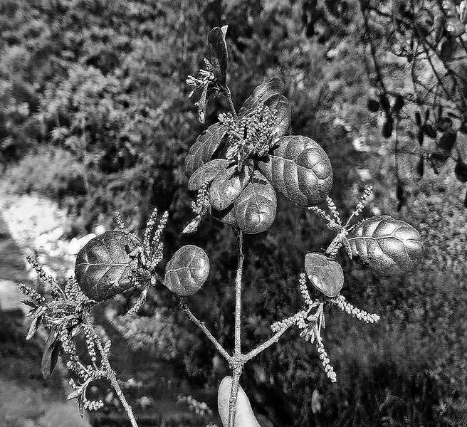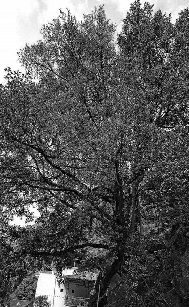 這是一簇叢生的灌木狀烏岡櫟,屬于國(guó)家一級(jí)保護(hù)樹種。整棵樹從根部分為5個(gè)主干,基部合起來約4人合圍,1993年就被柞水縣林業(yè)局掛牌為“國(guó)家重點(diǎn)保護(hù)樹木”。烏岡櫟是殼斗科櫟屬的常綠喬木,常生于山地巖石上,一般花期在3-4月,果熟期在9-10月。資料記載,它在我國(guó)長(zhǎng)江流域中下游和南部各省區(qū)生長(zhǎng),北至陜西均有分布。