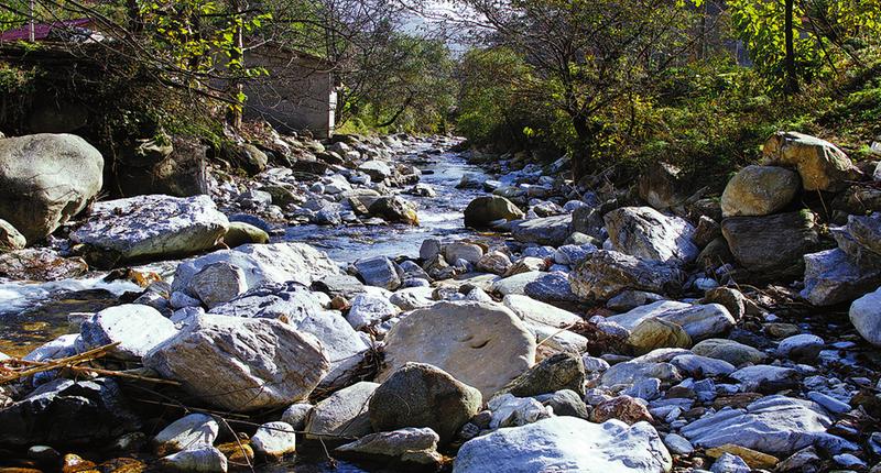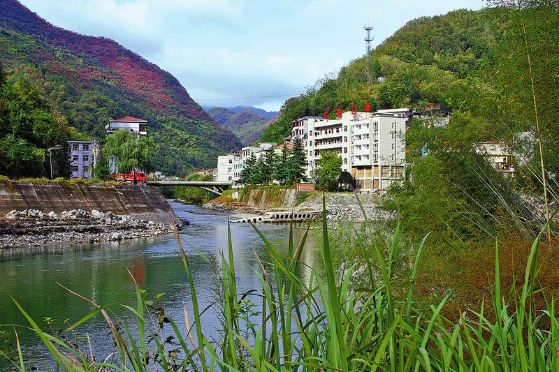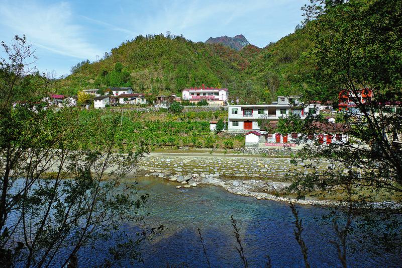 行走達仁河,在旬陽縣仁河口鎮(zhèn)入口,逆流而上,不多遠只見路邊一塊矩形牌子,上書“全國一村一品示范鎮(zhèn)”,往上就進入鎮(zhèn)安地界。河水沿著新修的河道緩緩向東南流,河道在這一段還算寬闊。