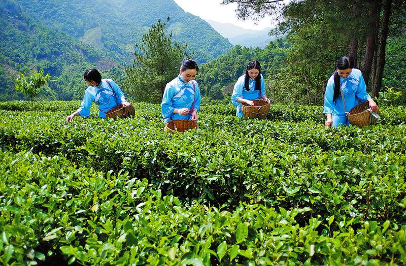 2019年5月,采茶女在農(nóng)光村茶園采茶。